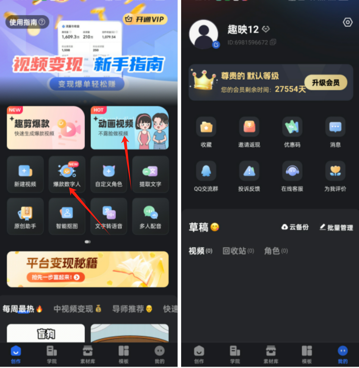爆款数字人、原创沙雕动画原创视频制作APP软件,其实这种视频都是用软件轻松就可以做出来的,但是这类型的软件基本都是收费的,今天分享的这个趣映软件是做沙雕视频中的NO1,同时分享的这个也是解锁版,所有功能都是可以使用的。