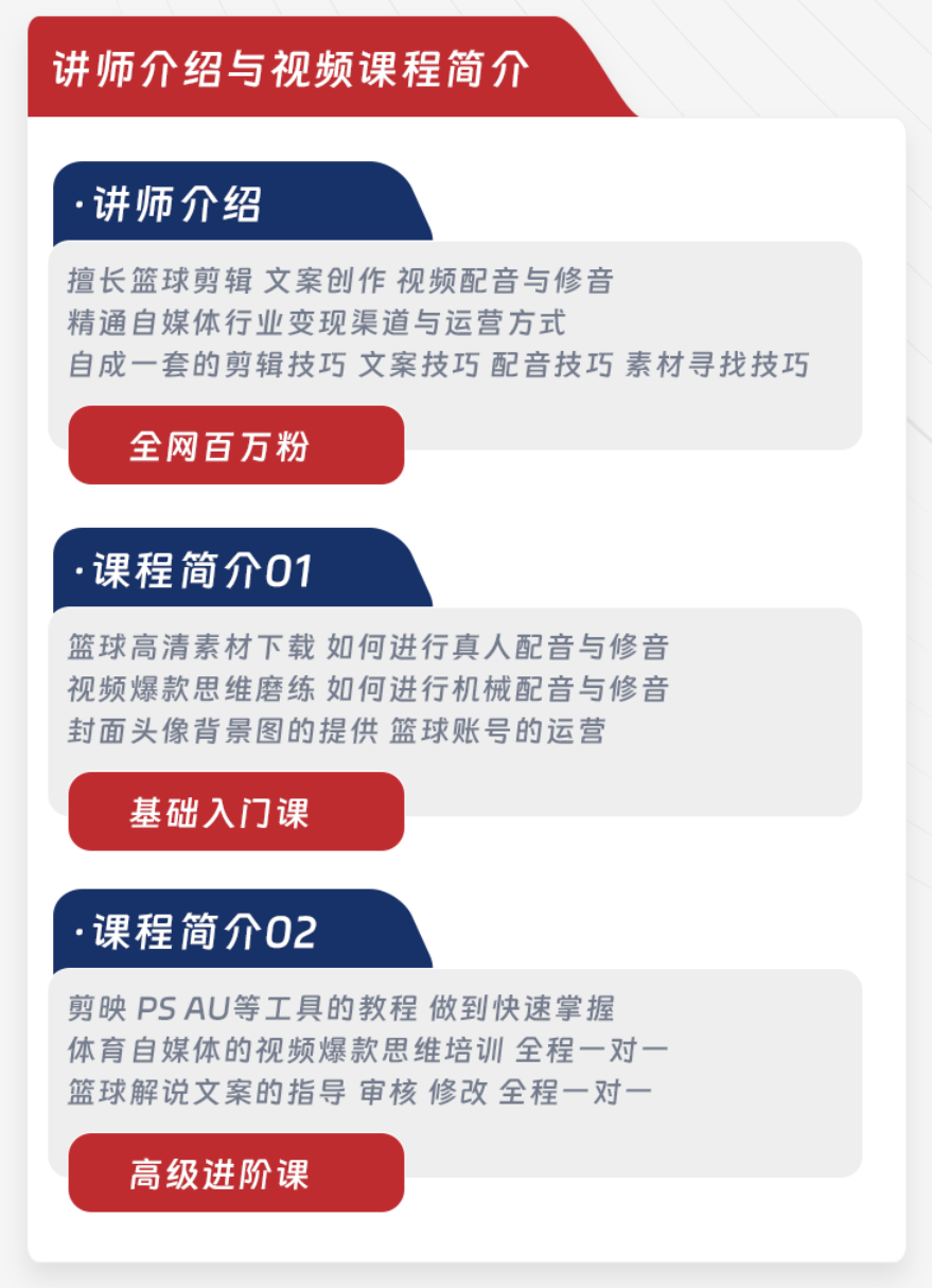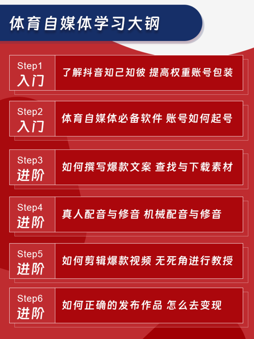 百万大V带你全流程学习体育自媒体短视频文案创作、视频制作和账号运营。