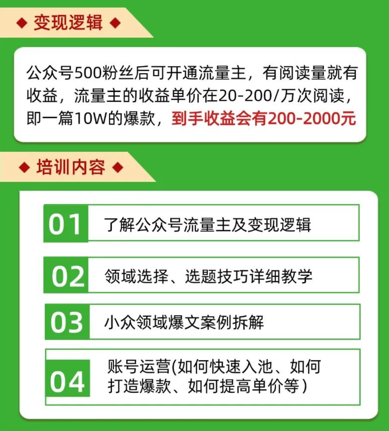 我们公众号满了500粉以后,可以开通公众号流量主,就能靠阅读量挣钱了,阅读量越多,我们的收益就越多,这个是一个最基本的变现逻辑。