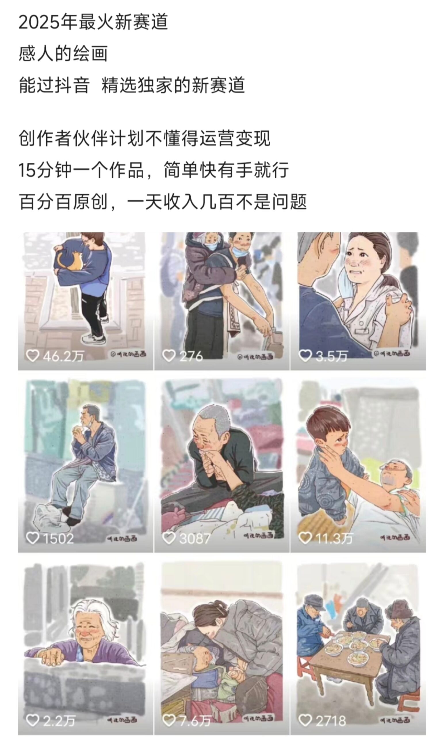 感人绘画短视频项目,适合抖音、快手、视频号、小红书
